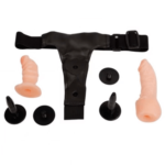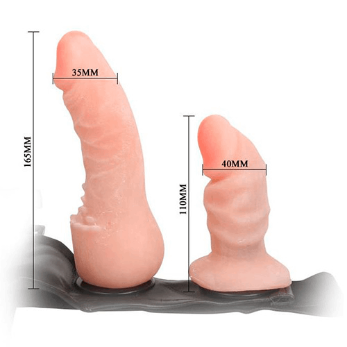 Arnés de Doble Estimulación Premium. Sistema completo “Strap-on” con dildo de doble función: extremo corto para estimulación interna de quien lo usa y extremo largo para penetración. Correas de neopreno acolchado para confort. Medidas: Dildo penetración 17x4cm / Dildo interno 12×2.5cm. Cintura hasta 120cm.